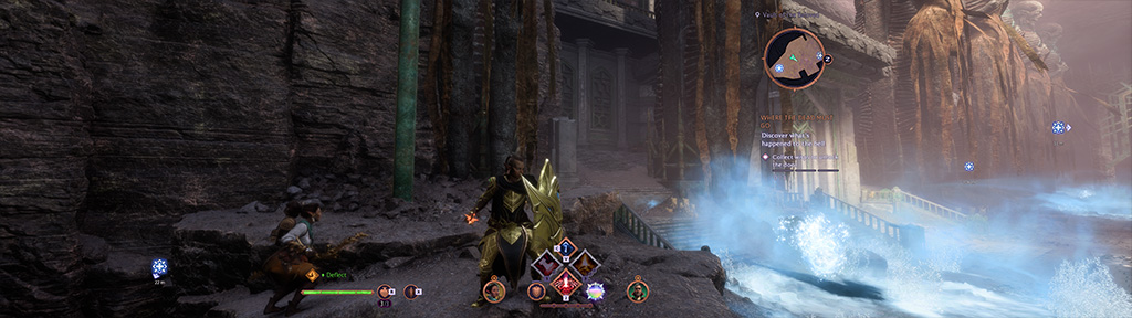 Taistelujärjestelmä on nopeatempoisempi kuin vanhoissa Dragon Age -peleissä, enemmän toimintapainotteinen. Samalla se tarkoittaa, että taktinen pysäytä-ajatus-suunnittele -tapa pelata on vähemmällä. On selkeä linjavalinta, että Veilguardissa taistelut ovat dynaamisia. Tosin miettimistaukoa tarvittaessa voit avata erikoistaitojen heittoikkunan, jolloin peli pysähtyy.